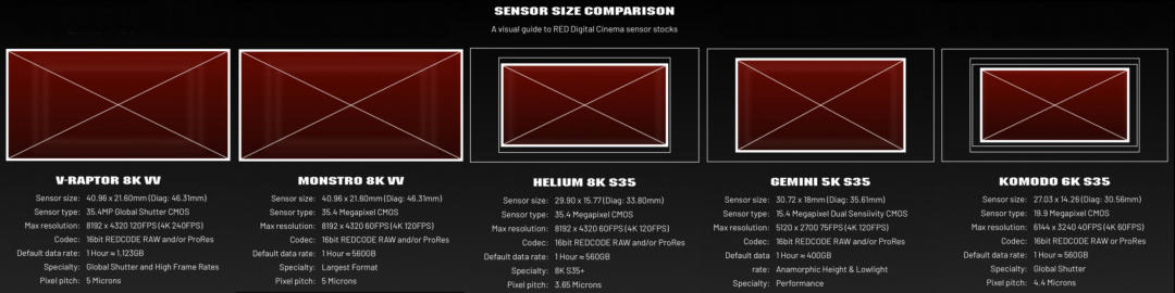 Die digitalen Sensoren der REDs haben bekanntermaßen andere Abmessungen/Proportionen die in der nachfolgenden Grafik dargestellt sind.